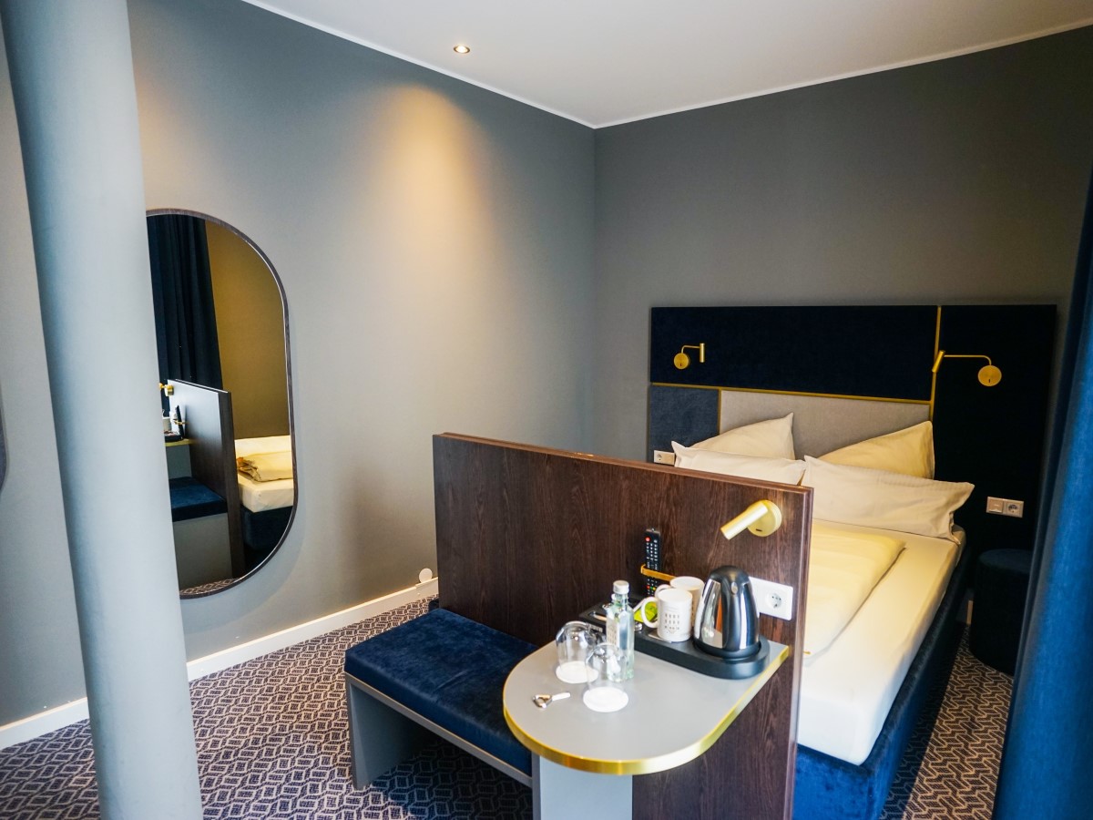 Die Economy Zimmer befinden sich im Haupthaus und liegen ruhig zum Innenhof. Die Zimmer sind zweckmäßig eingerichtet, warme Naturtöne und Holzmöbel bestimmen die Einrichtung. Die Zimmer sind 12 qm groß und verfügen über ein Einzelbett sowie ein Bad mit Dusche.