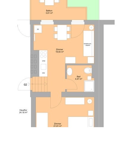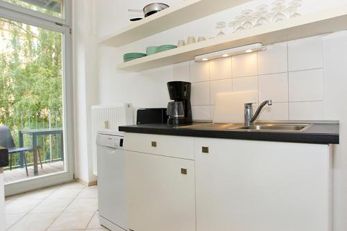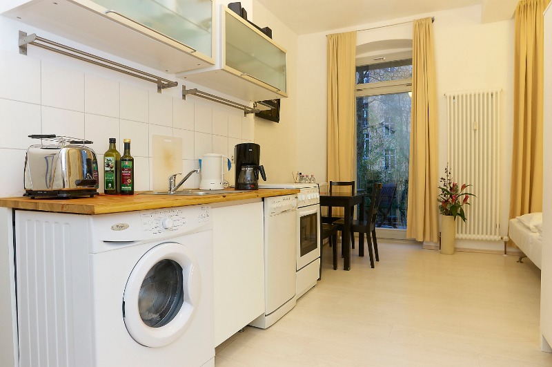 Eigene Küche, eigenes Badezimmer mit Badewanne, Balkon, Spülmaschine, Waschmaschine und Kaffeemaschine.