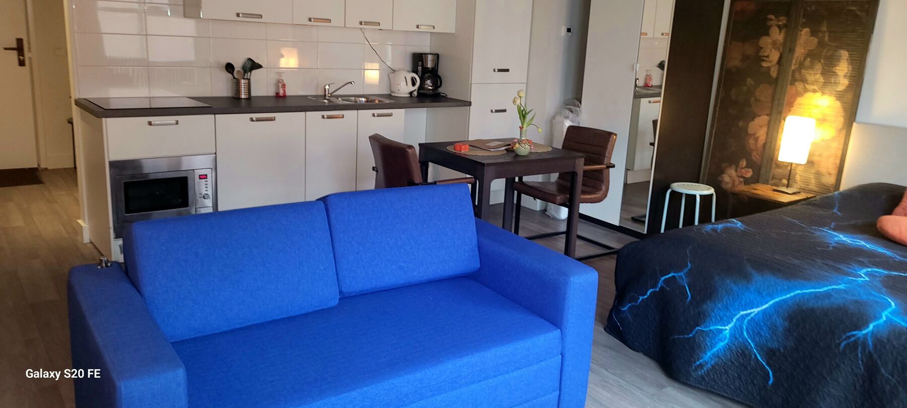Een moderne studio, ideaal voor zowel kort als langer verblijf.
