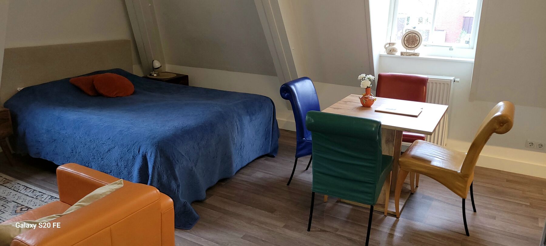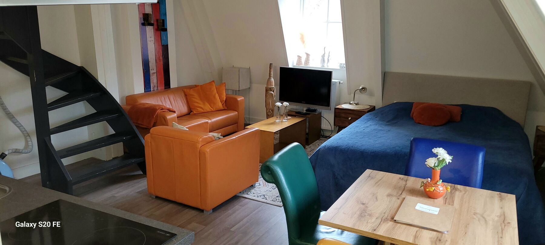 Sfeervolle studio in ons Rijksmonument met slaapgedeelte op de vide. Ideaal voor een comfortabel en huiselijk verblijf.